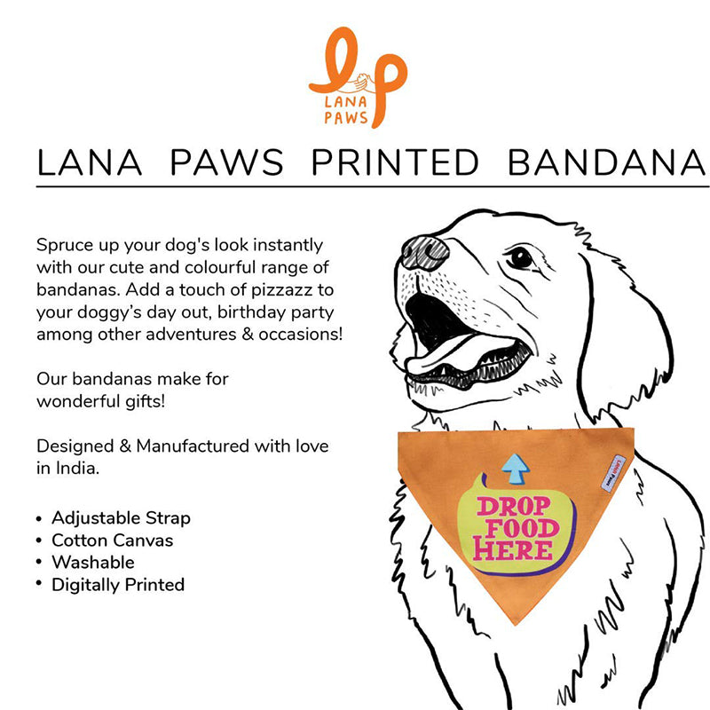 Lana Paws Drop Food Here Adjustable Dog Bandana/Scarf, Orange